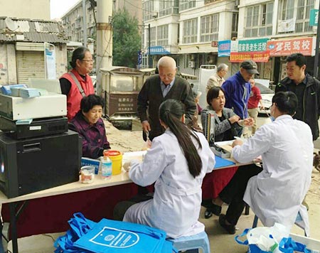 碑林区开通巷社区义诊现场众多的老年群众