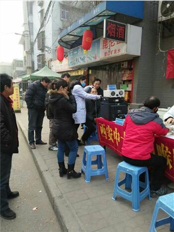 1月7日一大早,在白鹭湾社区龙渠湾37号门前,西安中大耳鼻喉医院义诊医生团的医护人员们刚摆好医疗器械就被闻讯赶来的居民们围得水泄不通,现场气氛一下子热烈起来。
